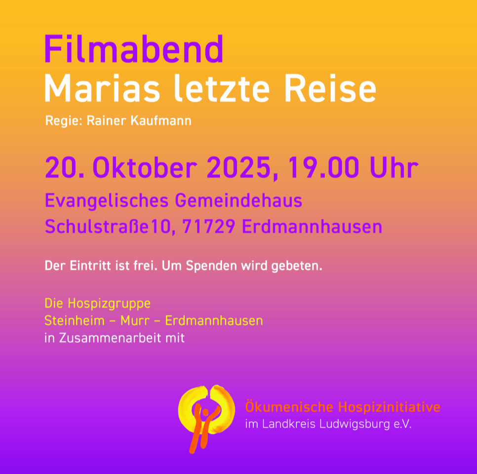 Ökumenisches Gemeindezentrum Tamm Ulmer Str. 12, Tamm15. Oktober | 19:00 Uhr Vortrag: „Ein Trauerfall ist mehr als nur eine Bestattung“ - Der Tod ein Teil vom Leben – Frau Kerstin Meyle vom Bestattungshaus Meyle wird uns an diesem Abend mit hinein nehmen in das, was ihr Beruf ausmacht. Jeden von uns wird es irgendwann betreffen, eine Bestattung eines nahestehenden Menschen organisieren… Vortrag – „Ein Trauerfall ist mehr als nur eine Bestattung“